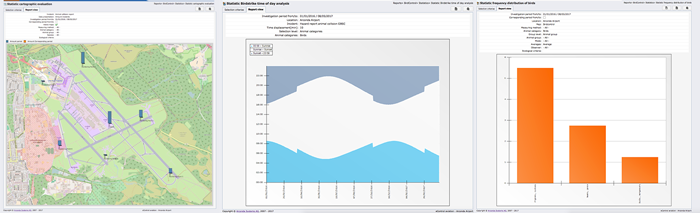 The Bird Control module contains numerous standard statistics for the ongoing monitoring of the airport and the relevant external habitats. Specific report generators offer a host of analysis options for the generation of long-term trend analyses and frequency distributions by location-related, time-related and countless other avifaunal criteria. The system also provides all necessary standard reports on topics ranging from the discovery of cadavers to the quantity of ammunition used so that regular reports may be made to the supervisory authorities.